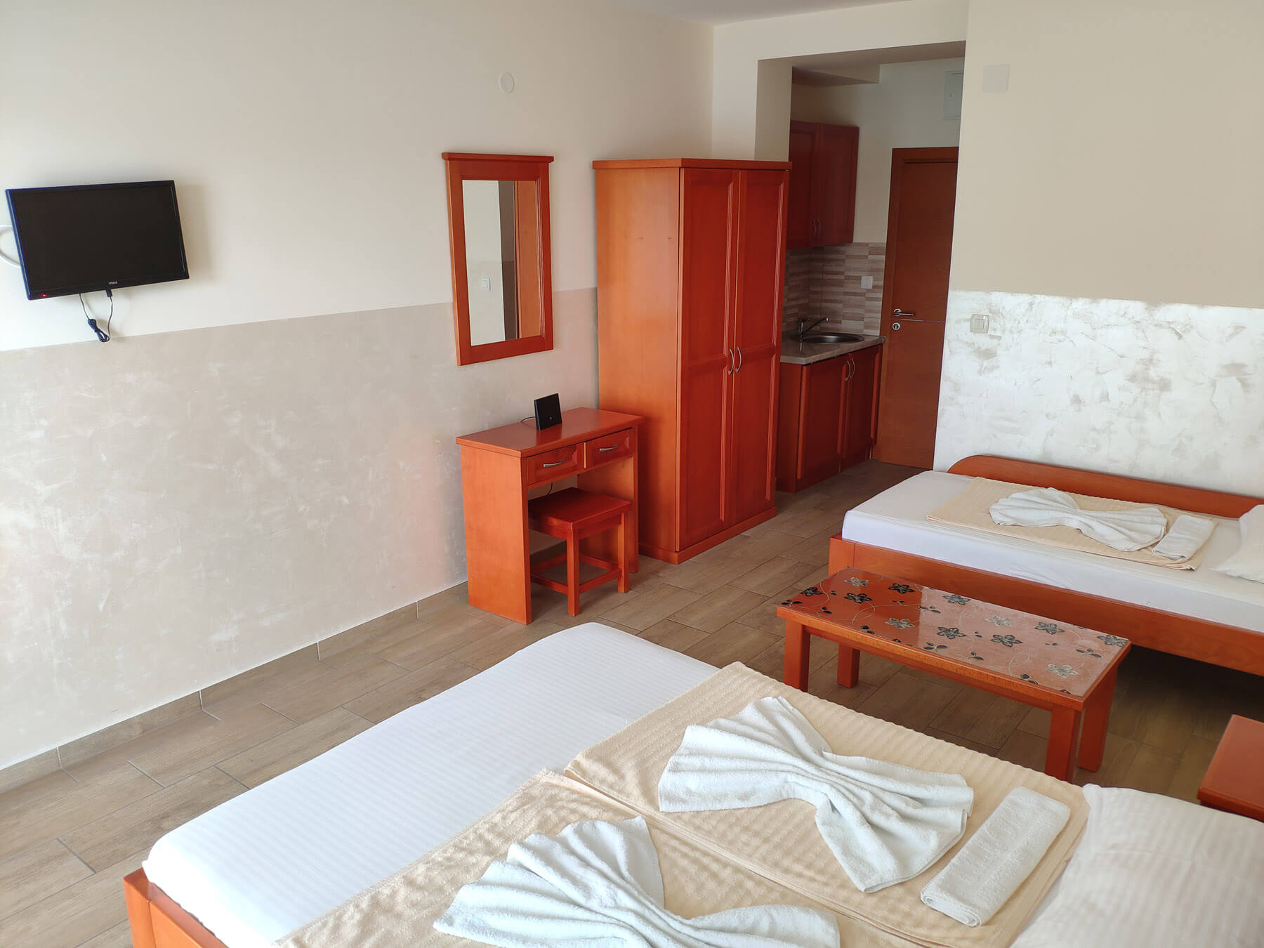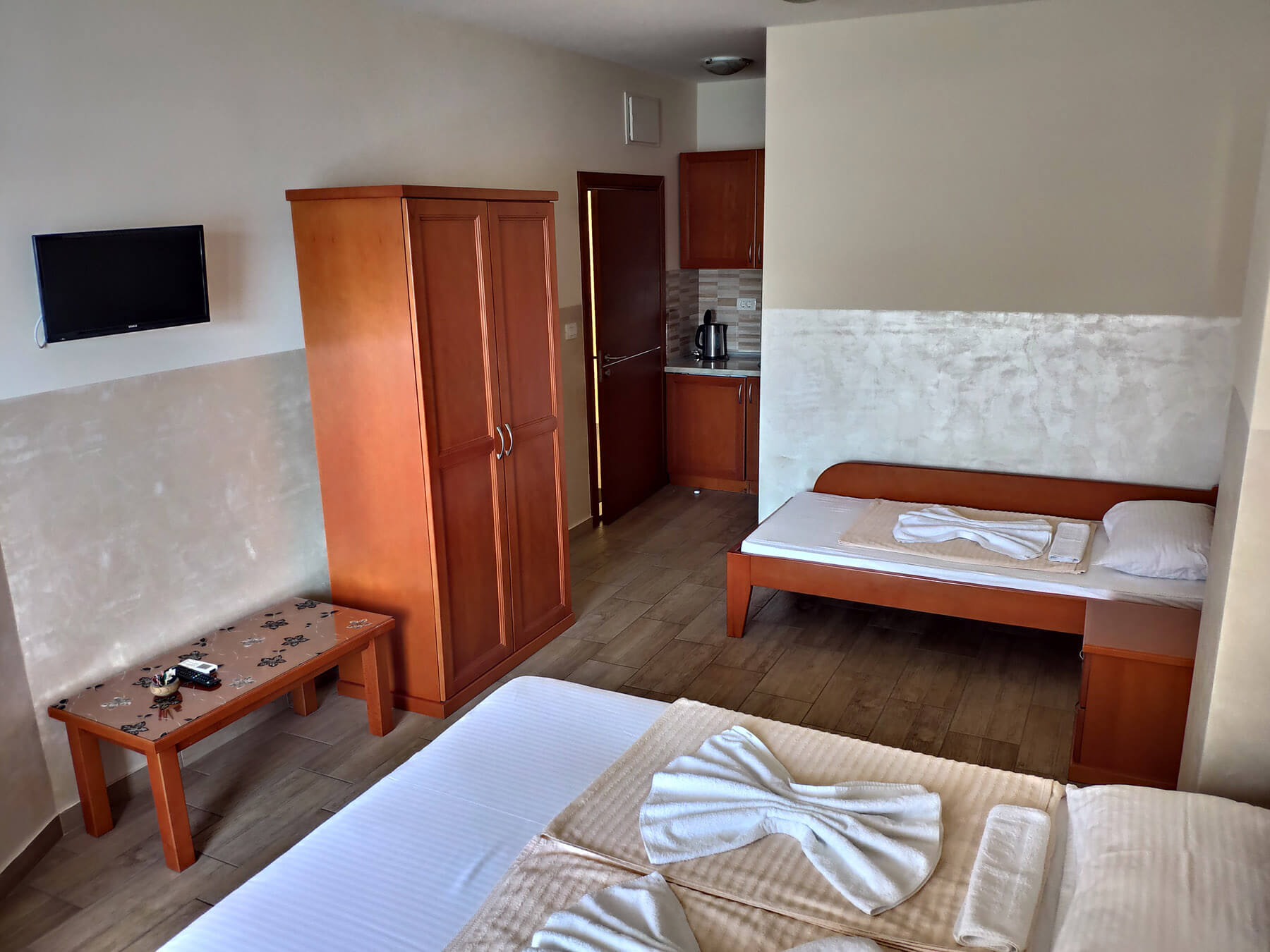 Studio 03 sea view (no kitchen)- 25m2, terrace with sea view, double bed +single bed, bathroom with shower, kitchenette (no stove). Maximum occupancy: 3 people.