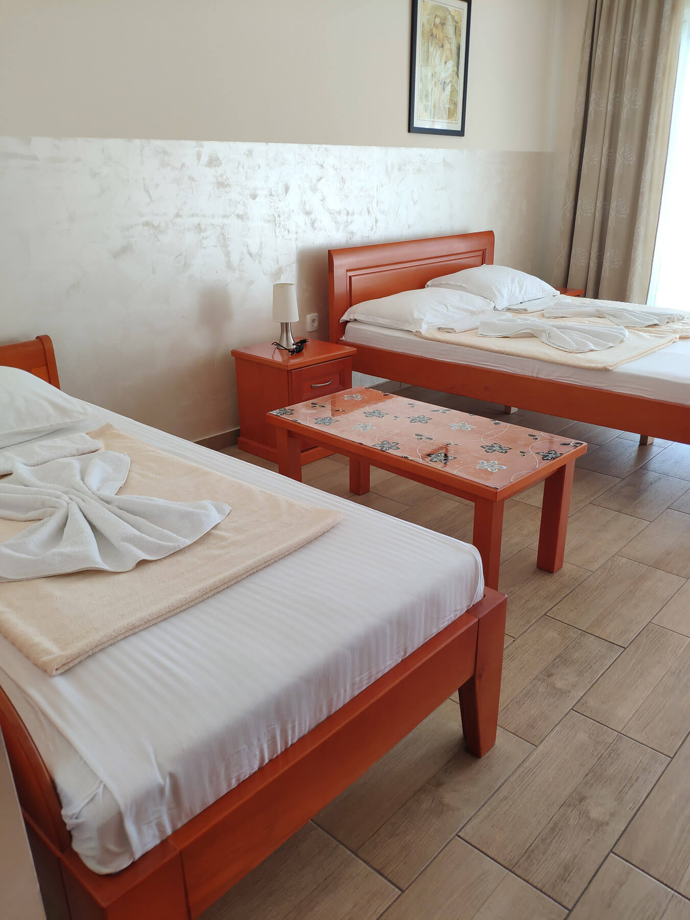 Triple room with balcony -25m2, balcony, double bed +single bed, mini-fridge, electric kettle, bathroom with shower. Maximum occupancy: 3 people.