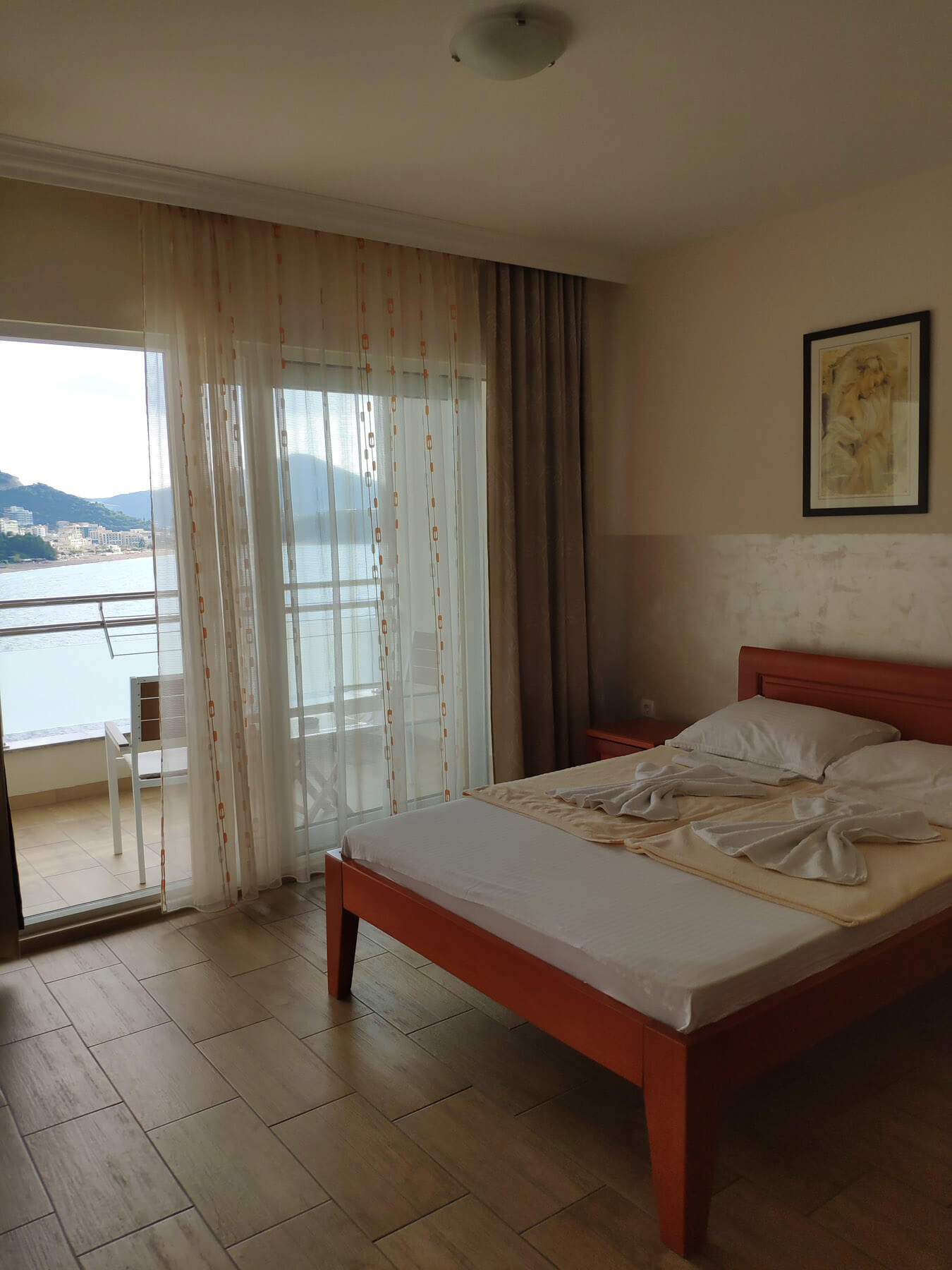 Apartment 04 one-bedroom sea view balcony -48 m2, living room with a French bed + corner sofa, air conditioning and TV in this room only, fully equipped kitchen with a dining table and chairs, bedroom with a French bed or two single beds, bathroom with shower. Maximum occupancy: 4 people.
