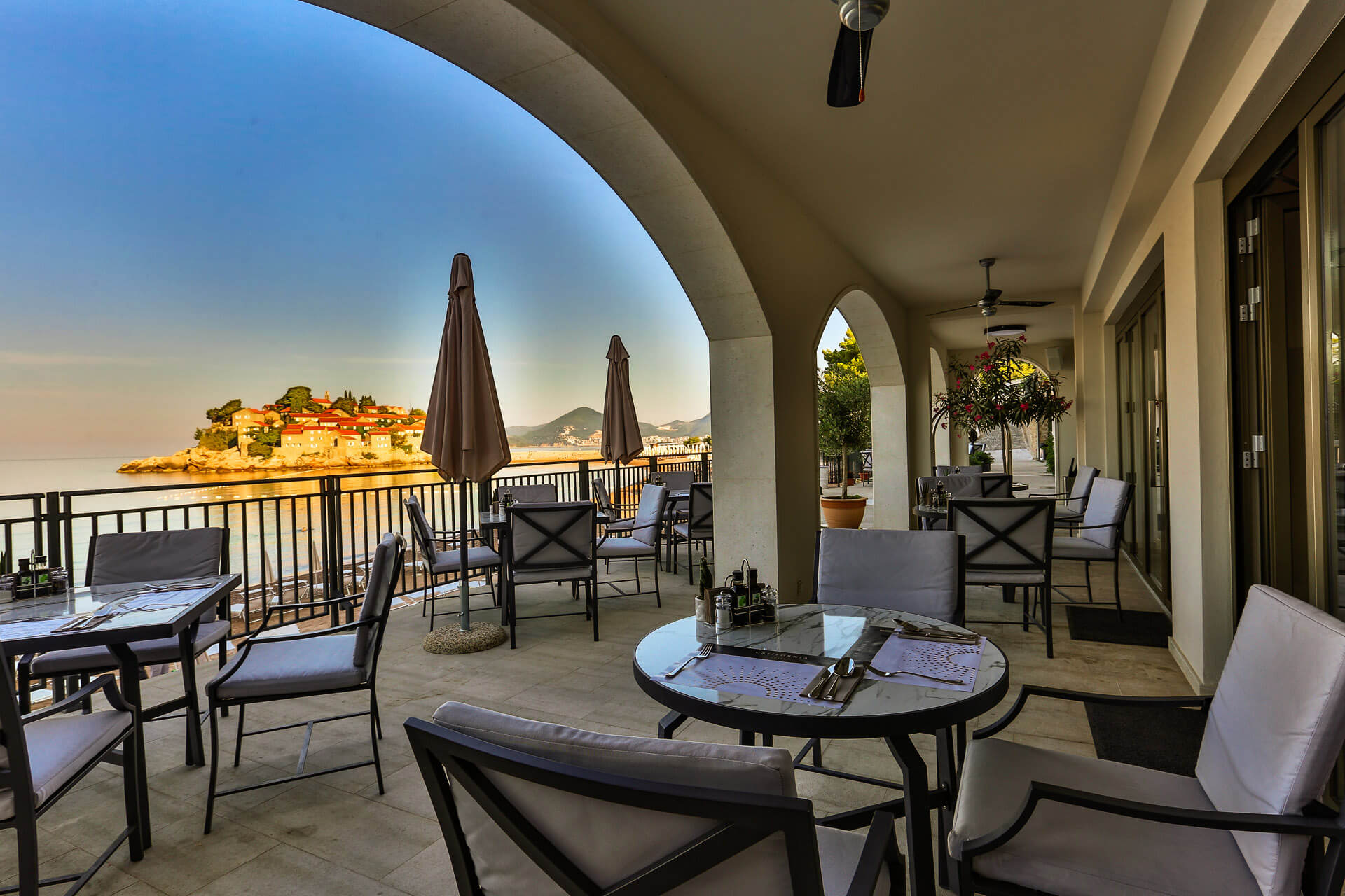 Hotel California is a unique, luxurious 5-star hotel, located by the sea and a pebble beach, across from the Sveti Stefan peninsula. Hotel guests have the opportunity to enjoy the beach facilities for a wonderful holiday, for adults and children over 12 years old. The hotel offers stunning views of the Sveti Stefan peninsula and the Adriatic Sea. Free wireless internet is available throughout the property. There are cafes and a bus stop nearby.