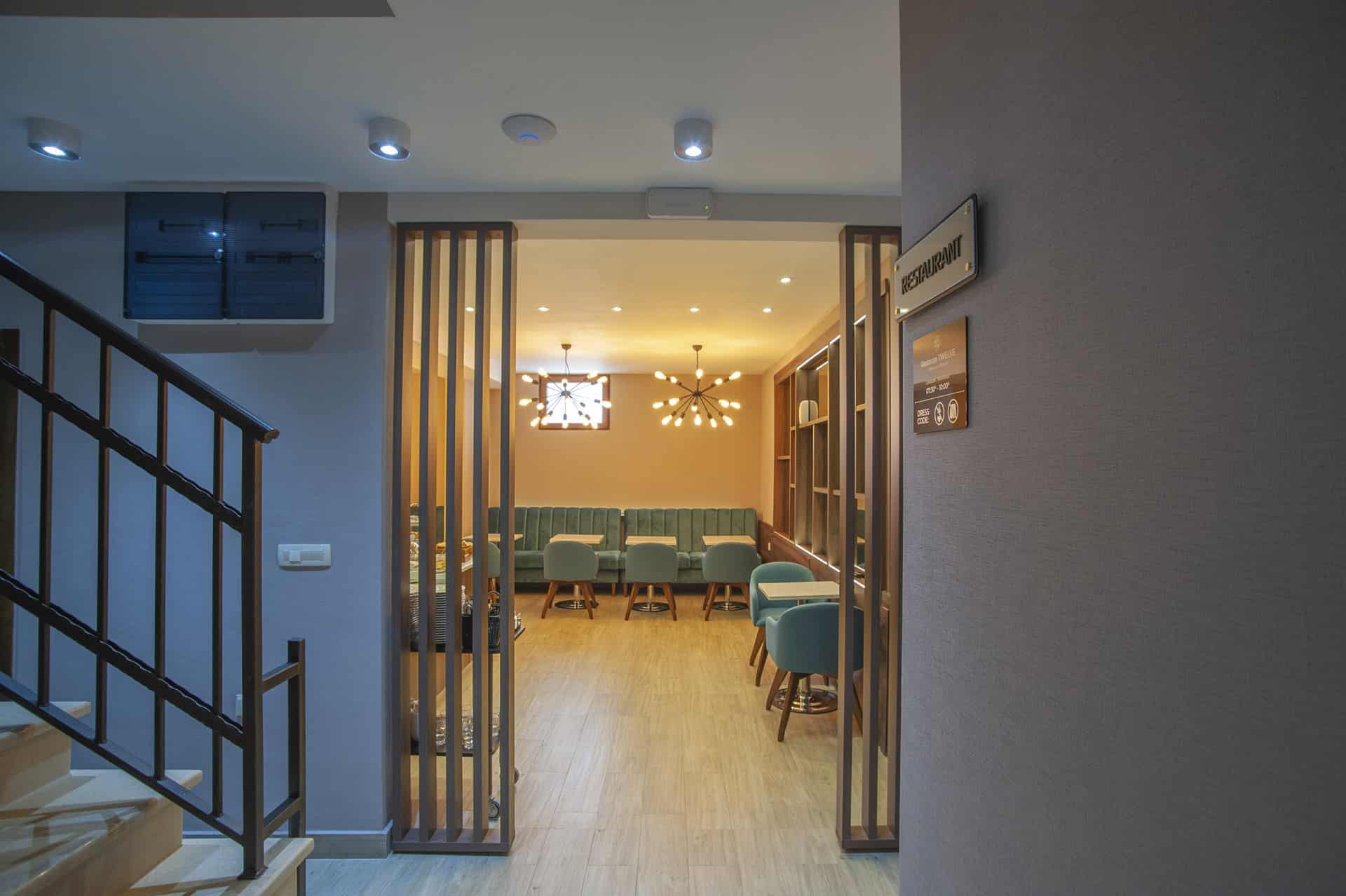 The hotel has a reception, restaurant, free private parking on request, outdoor swimming pool with terrace, free Wi-Fi throughout the building. Hotel Twelve has 16 rooms, some of which can have an extra bed to accommodate a third person. All rooms are air-conditioned, have a TV, minibar, safe, bathrooms equipped with shower and hairdryer.