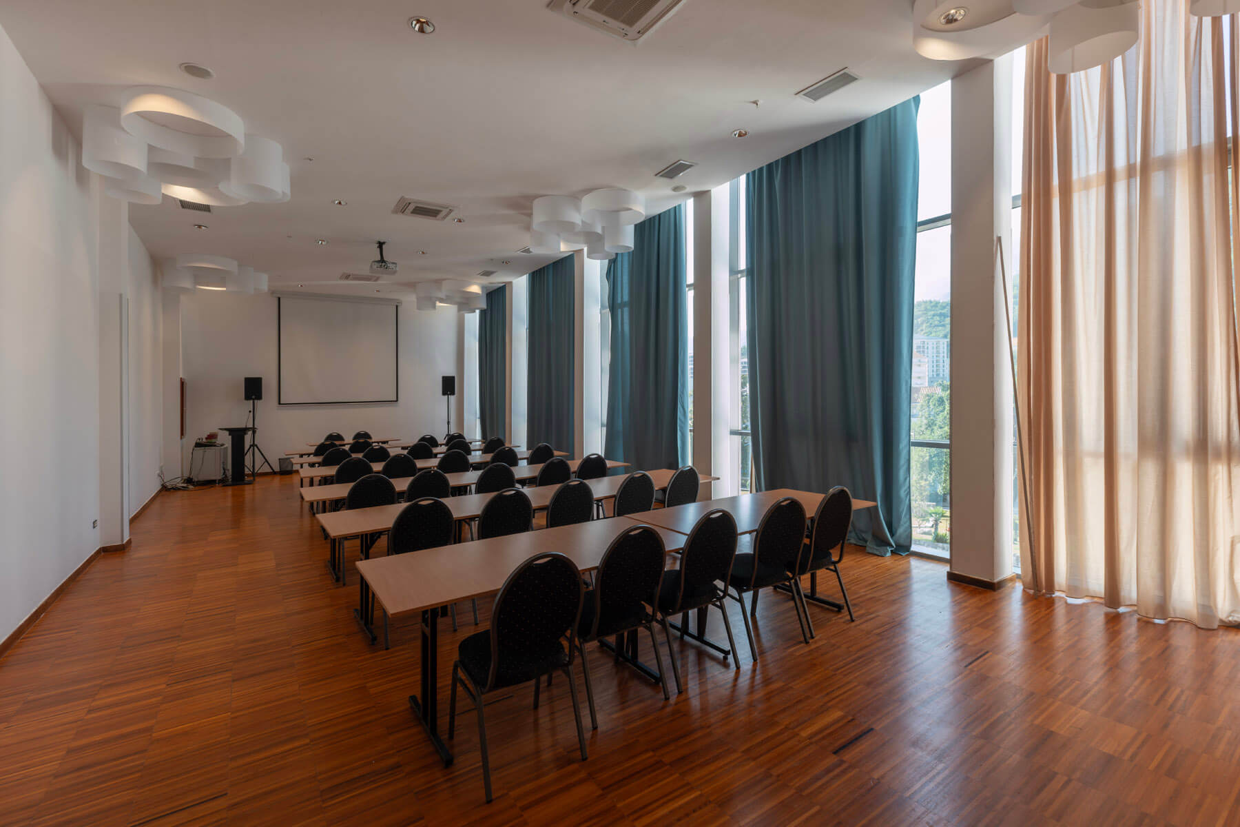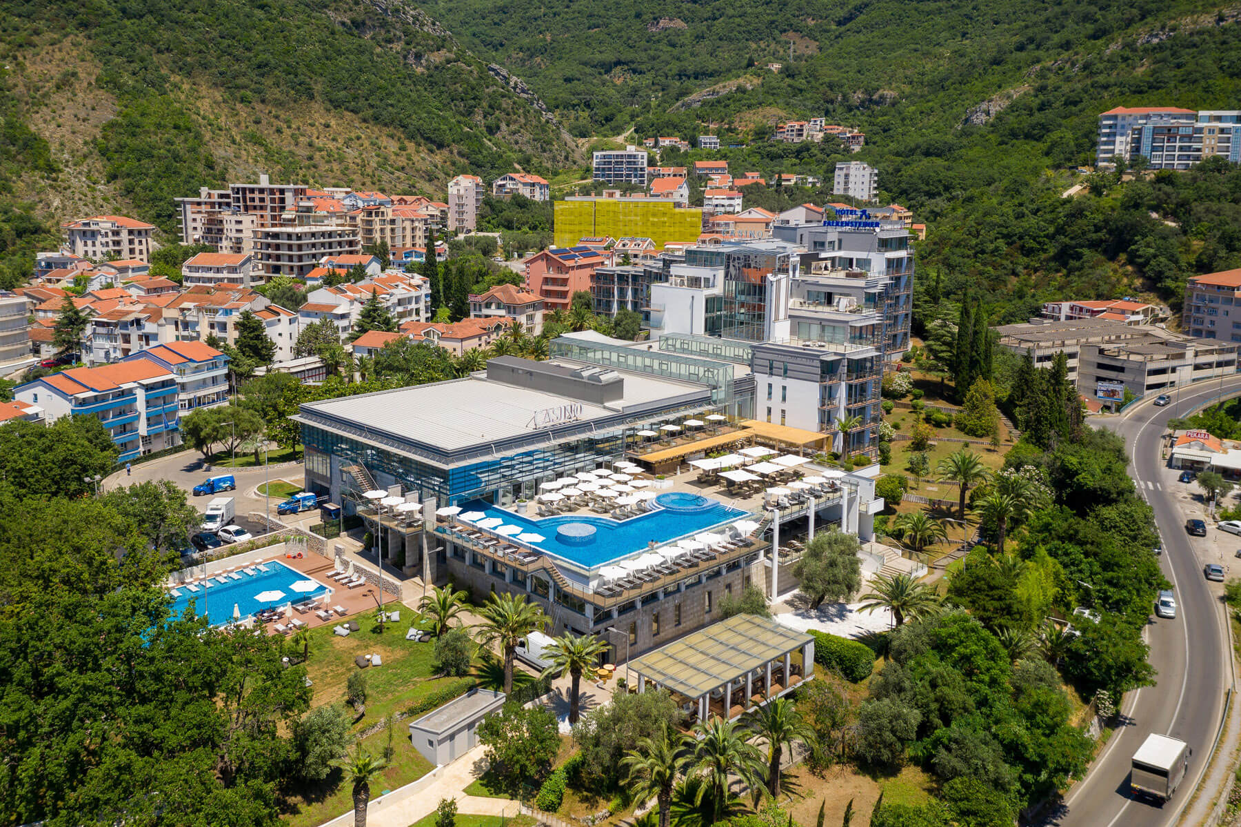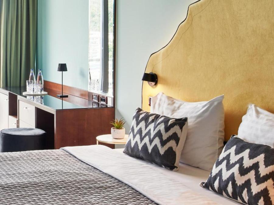 236 potpuno renoviranih soba i apartmana; restorani, barovi, vanjski panoramski bazen na terasi sa ležaljkama i suncobranima, spa centar, unutrašnji grijani bazen, salon ljepote, konferencijske sale, besplatan parking, besplatan Wi-Fi, pranje veša, bankomat, živa muzika tokom ljeta, lift.