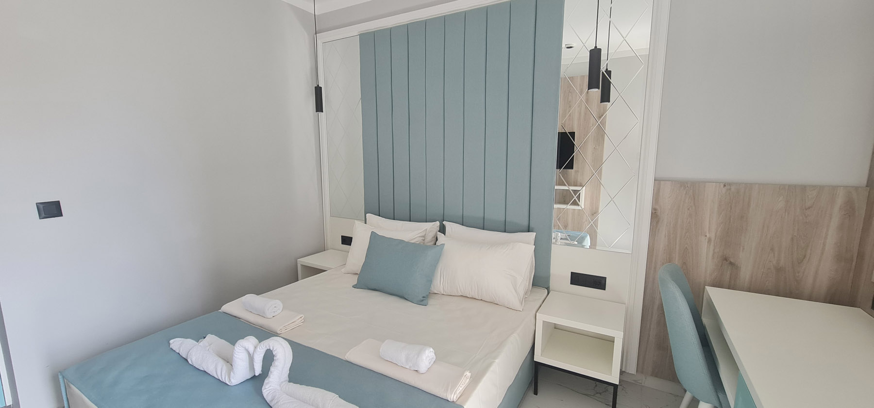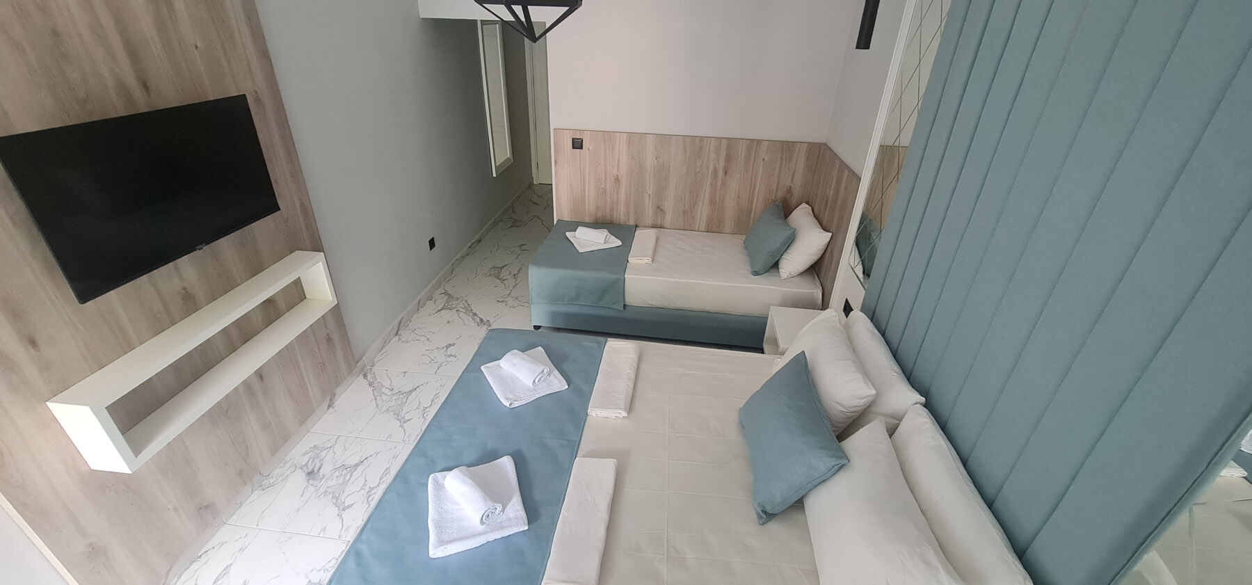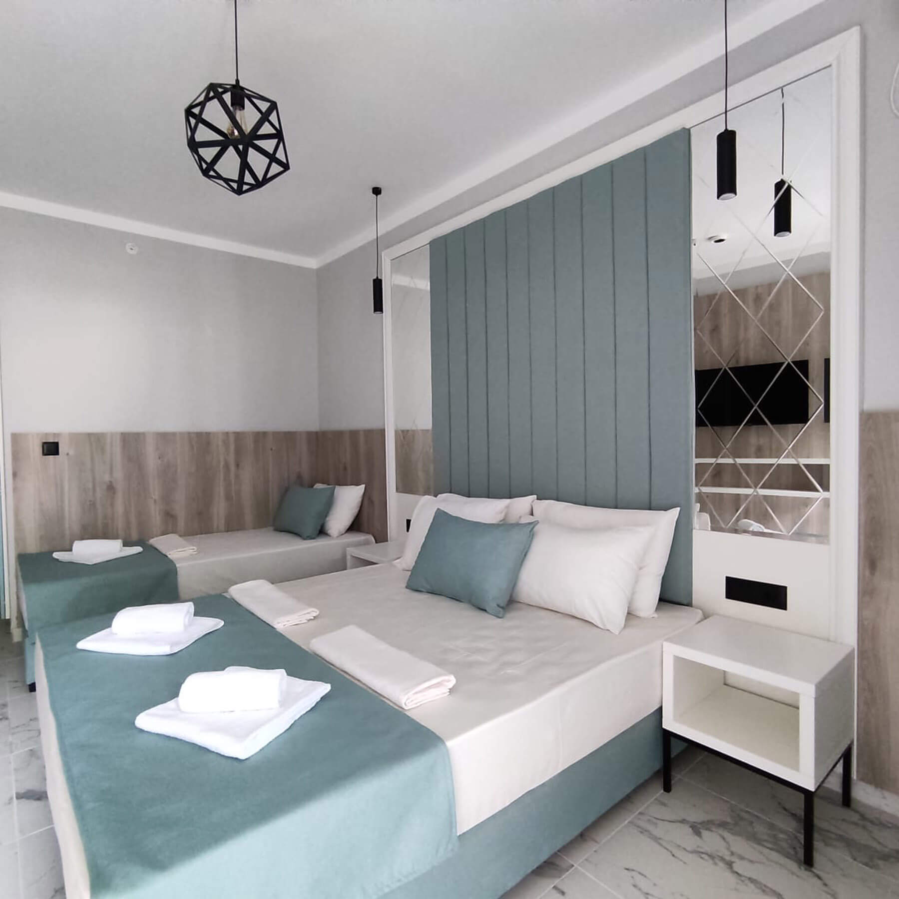Superior apartman: 27 m2 bračni krevet + 2 odvojena ležaja ili 1 bračni ležaj, privatno kupatilo sa tušem, morska strana ili pogled na park sa terrrace. Maksimalna popunjenost – 4 osobe.