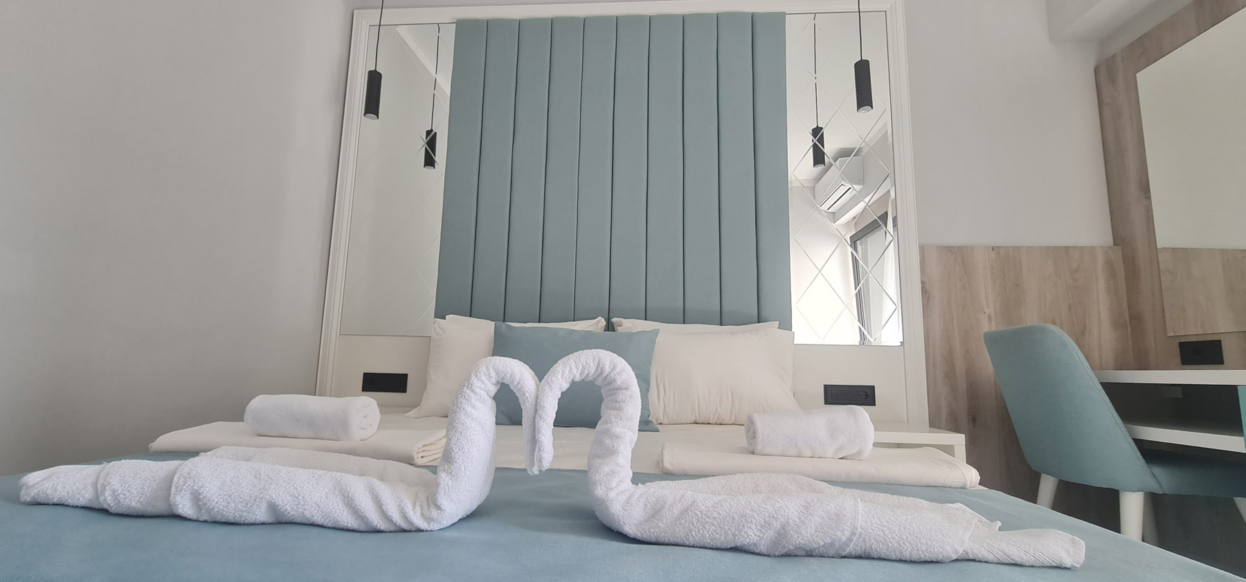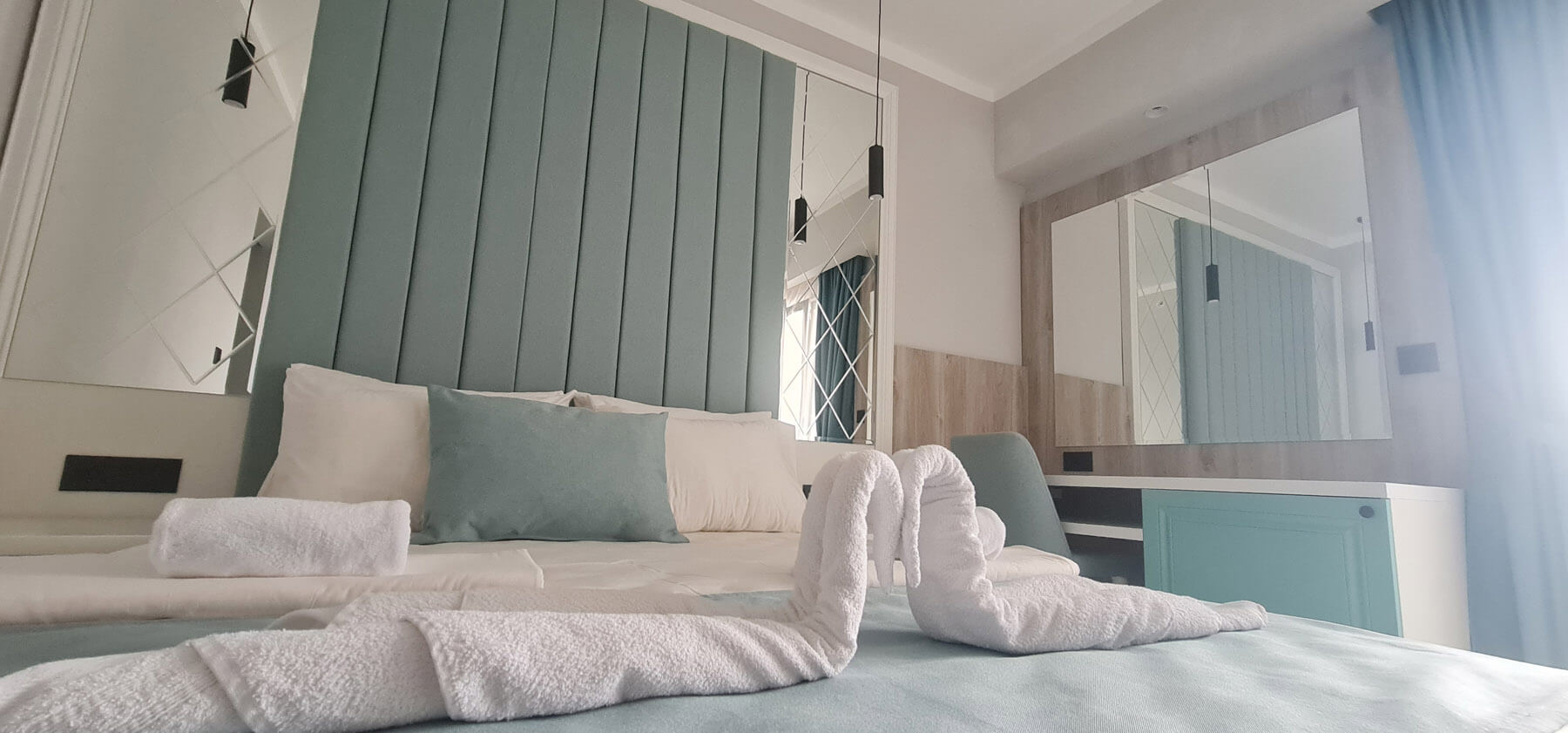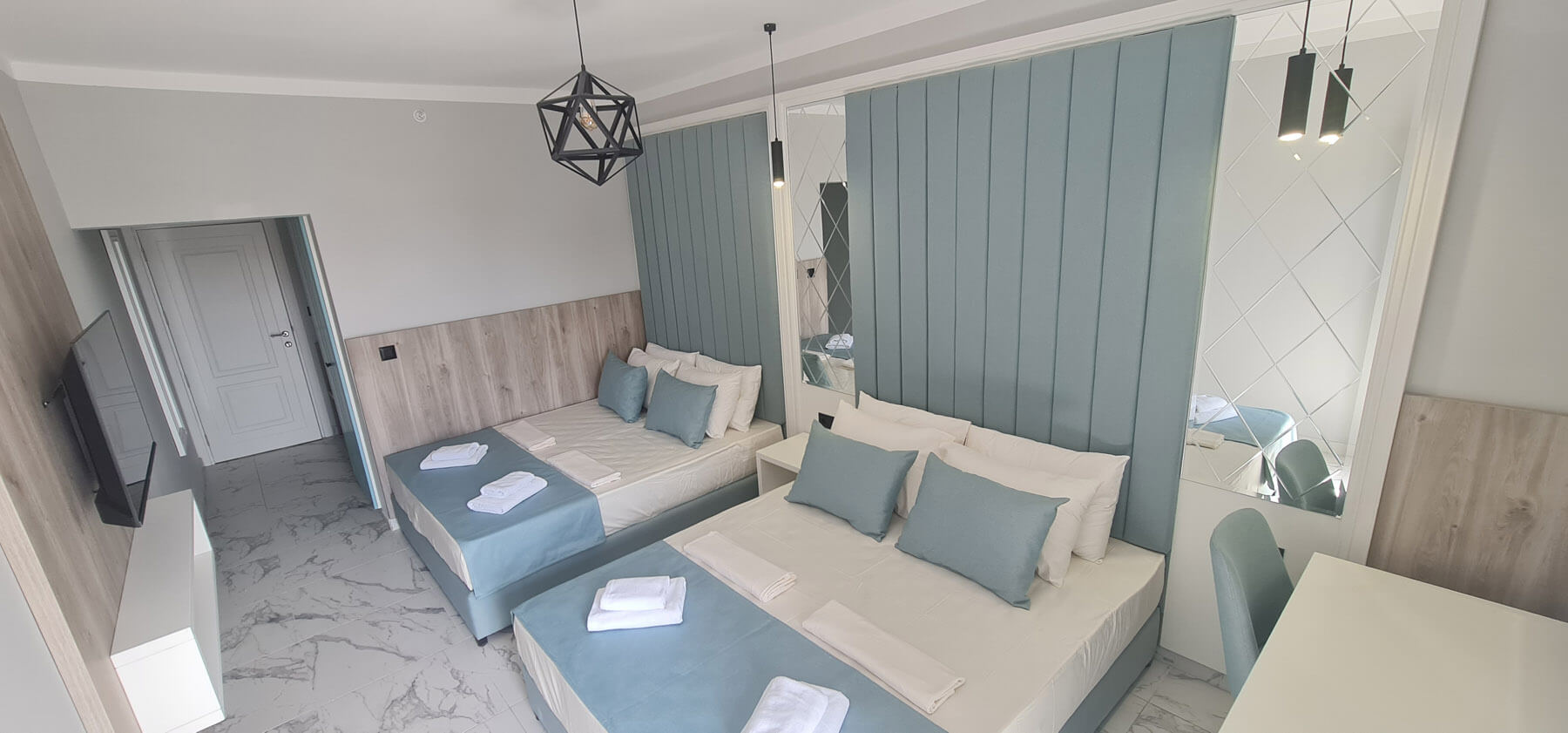 Superior apartman: 27 m2 bračni krevet + 2 odvojena ležaja ili 1 bračni ležaj, privatno kupatilo sa tušem, morska strana ili pogled na park sa terrrace. Maksimalna popunjenost – 4 osobe.