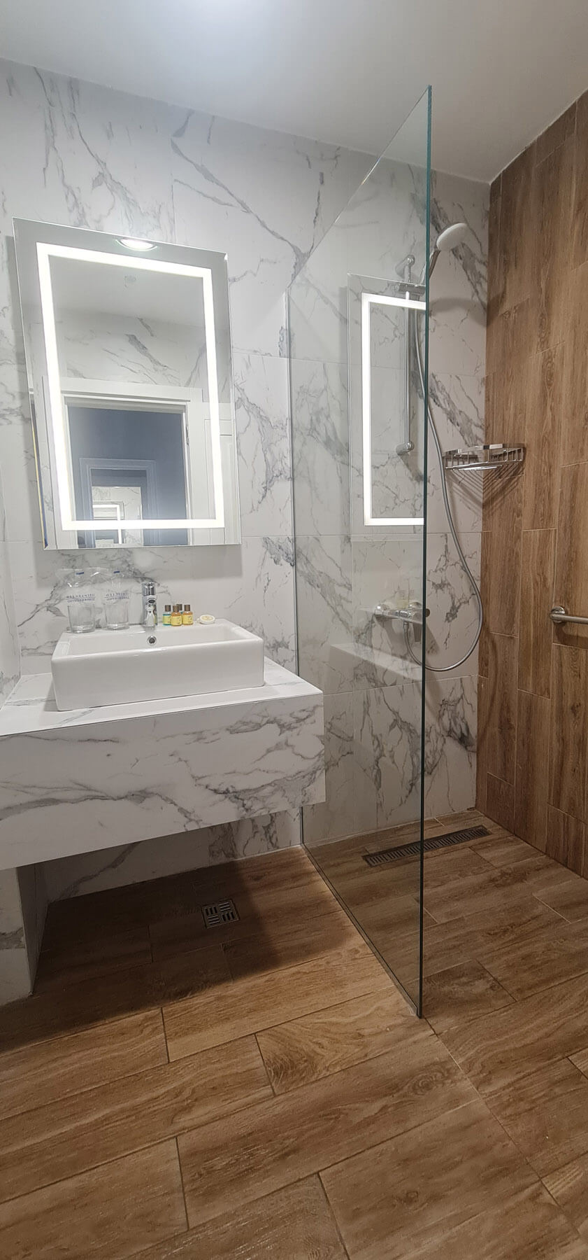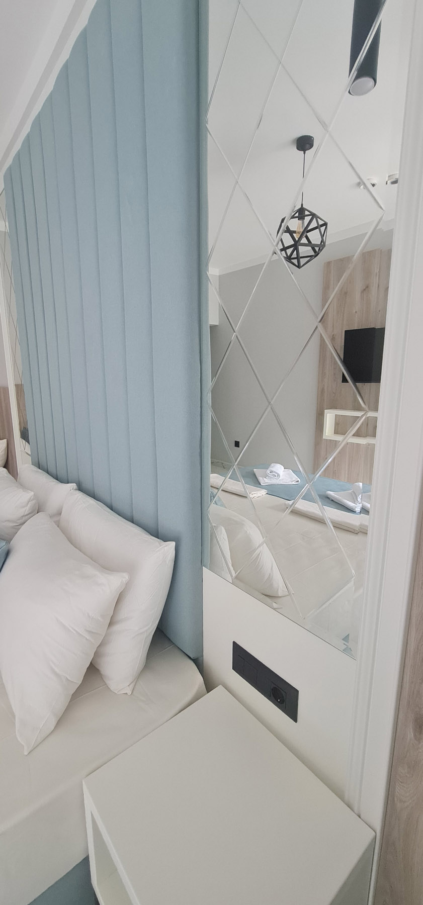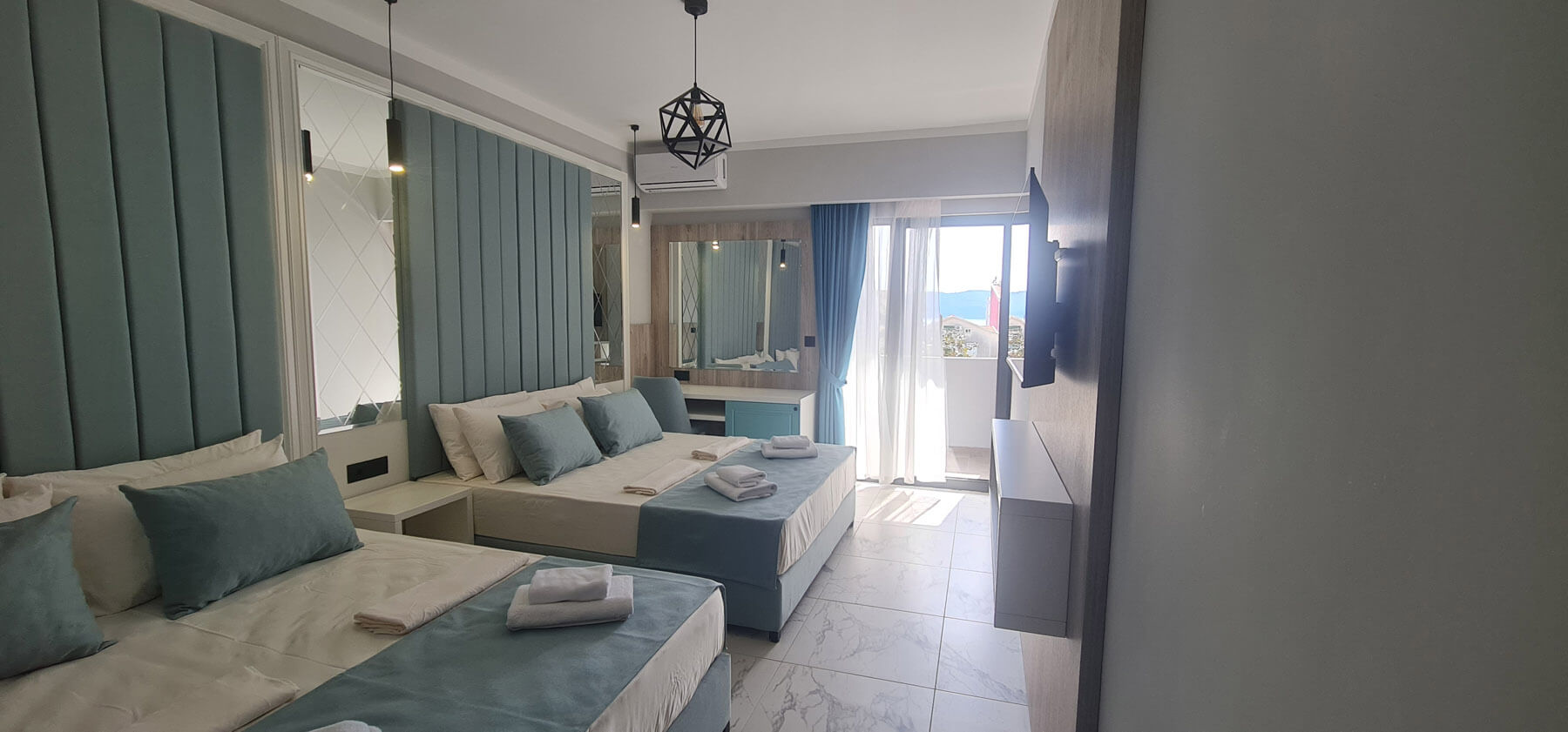 Superior soba pogled bočni pogled more: 24 m2, balkon 5 m2, bračni krevet + krevet za jednu osobu, vlastita kupaonica s tušem, bočni pogled na more. Maksimalna popunjenost – 3 osobe.