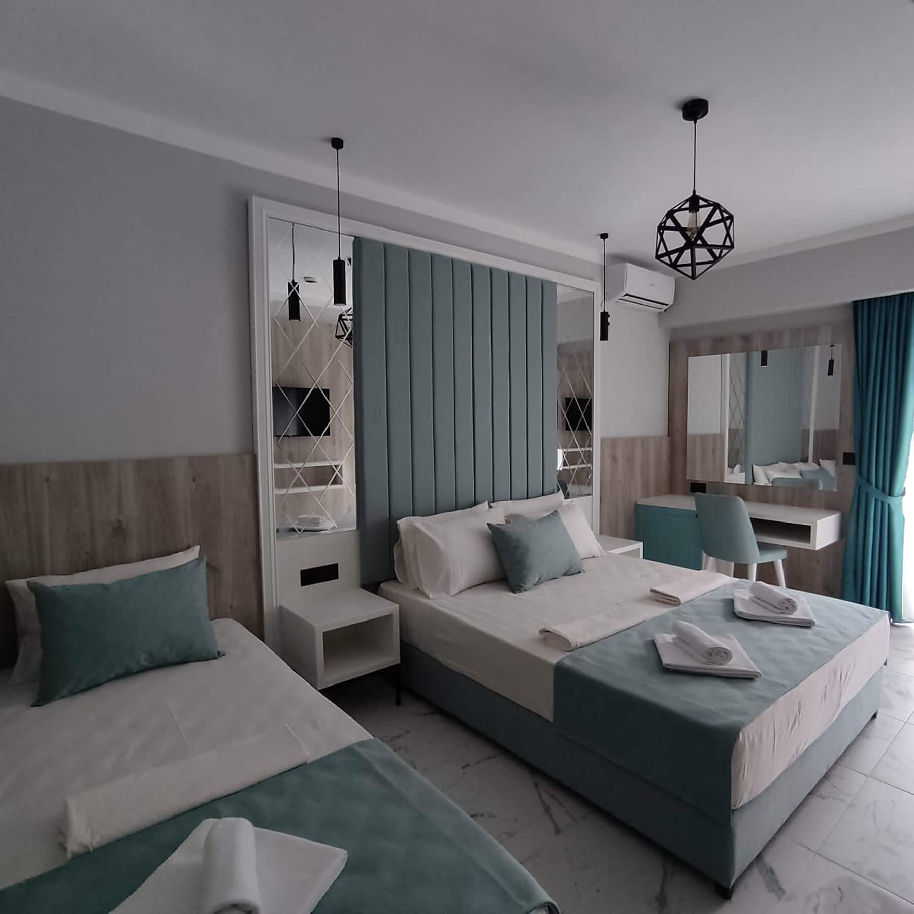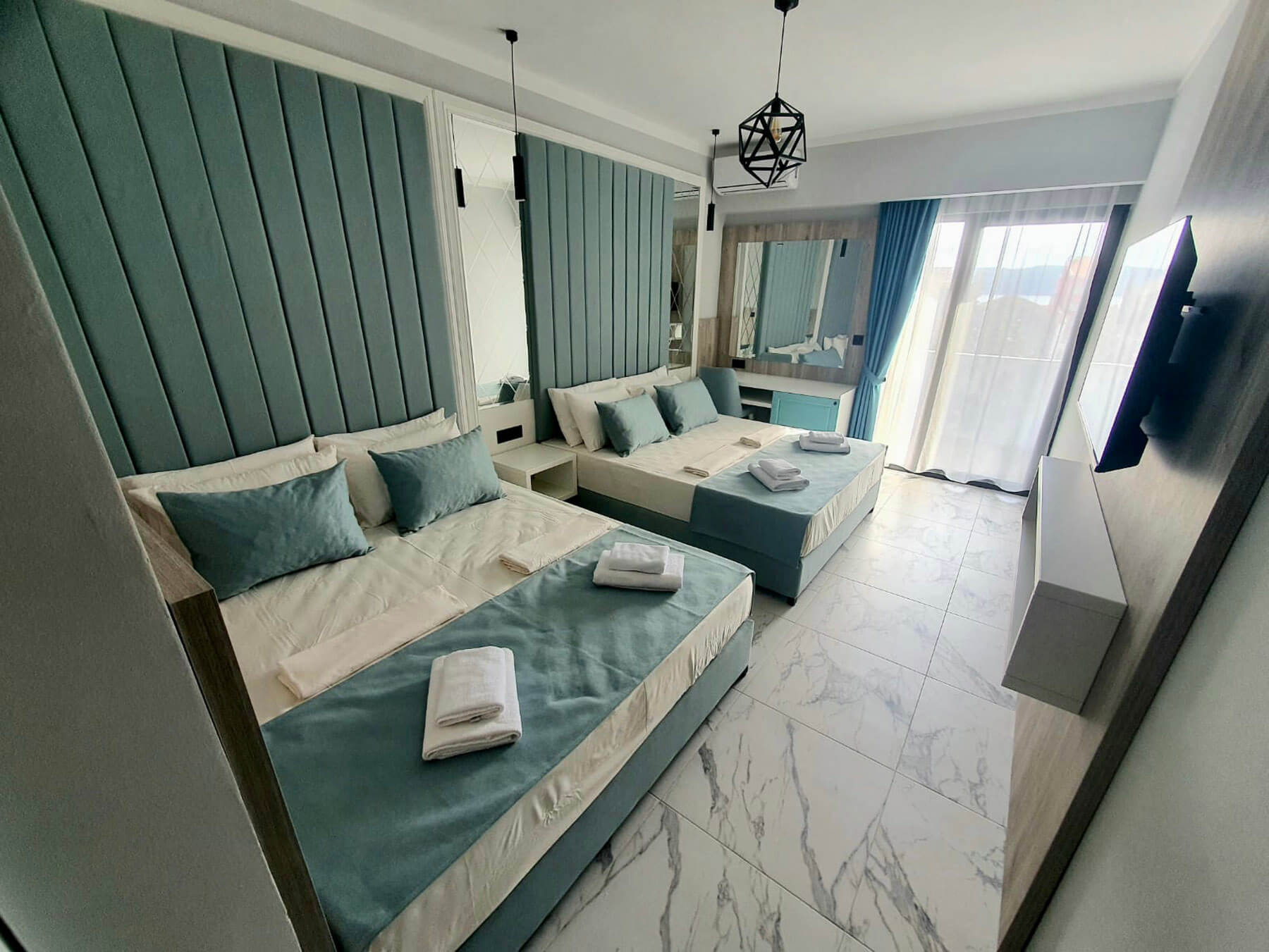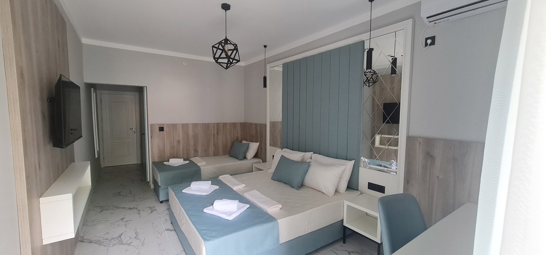 Klima uređaj, mini frižider, sef, TV, telefon, besplatan bežični internet, kupatilo sa tušem, fen za kosu, papuče, besplatan toaletni pribor.