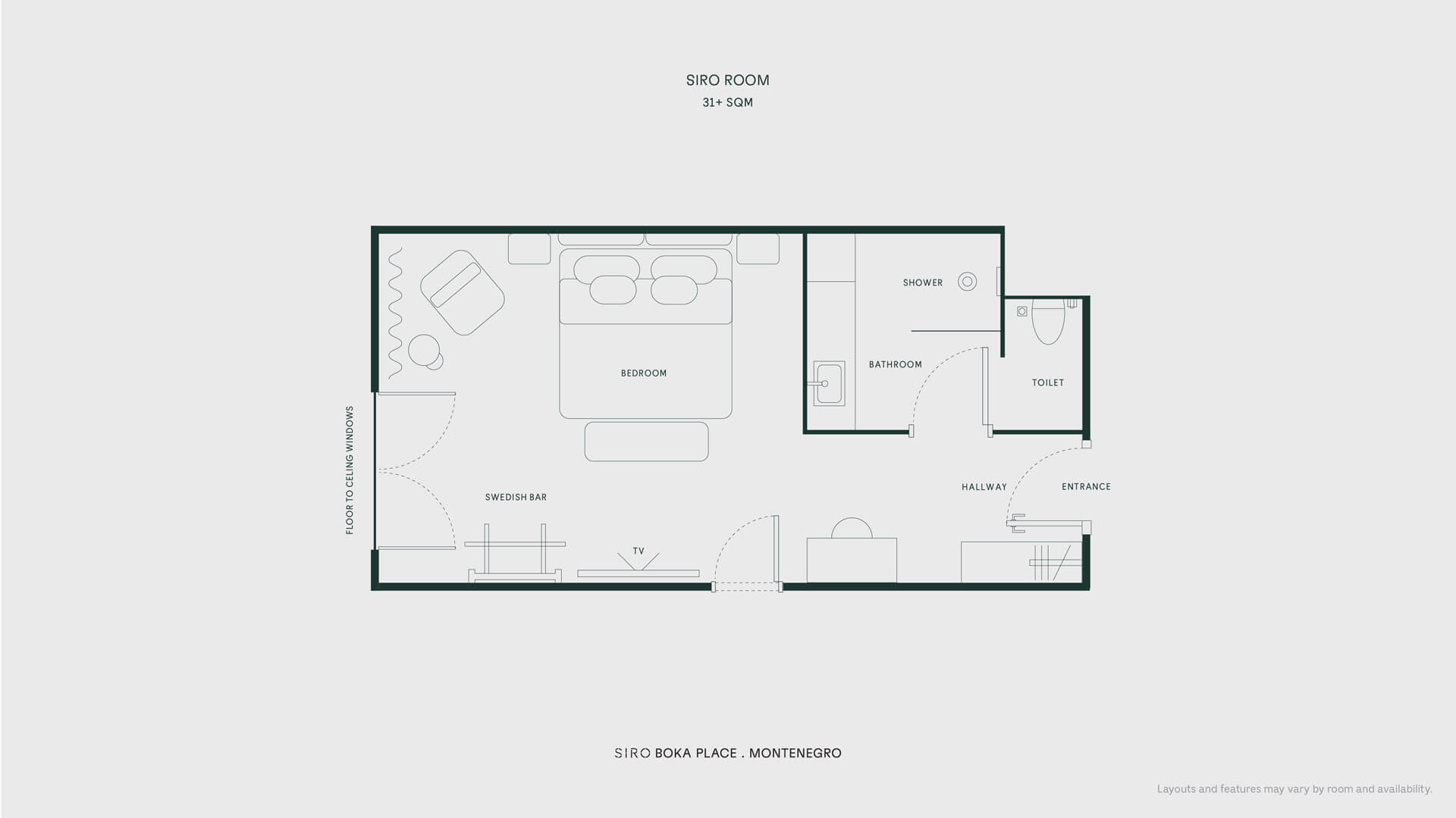 Siro room – odvojeni kreveti 100x200 ili bračni kreveti 200x200, 31m2. Maksimalna popunjenost – 2 osobe (ukupno 62 jedinice)